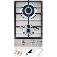 Gas Stove Gas Cooktop 2 Burners,12 Inches Portable Stainless Steel Built-in Gas Hob LPG/NG Dual Fuel Easy to Clean for RVs, Apartments, Outdoor
